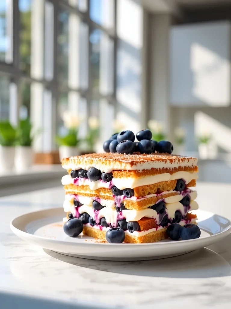 A light, creamy blueberry tiramisu that layers airy mascarpone with fresh blueberries and delicate ladyfingers—a gentle twist on a classic favorite.