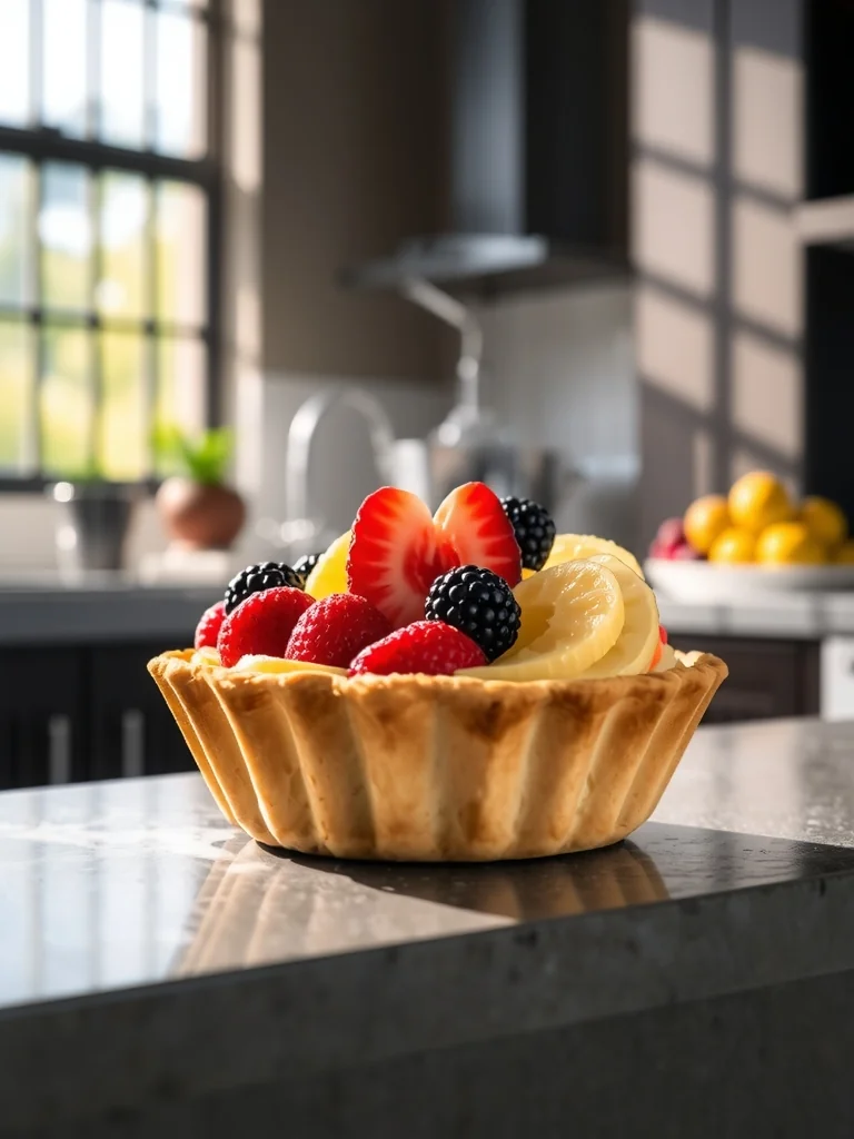 If using very juicy fruit, pat them dry before arranging on the tart.,The glaze can be swapped for a light honey‑citrus drizzle for a different flavor profile.,Allow the tart to rest for 10 minutes after glazing so the fruit sets.