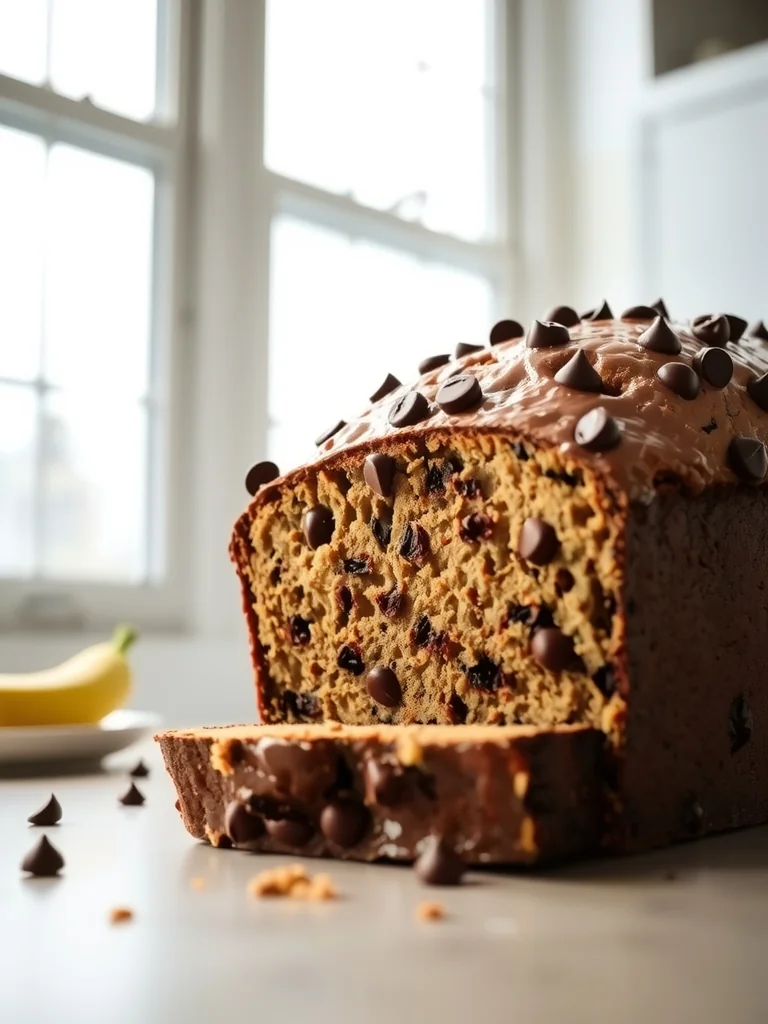 A wonderfully moist chocolate chip banana bread that feels like a gentle hug on a lazy morning. The sweet aroma of ripe bananas mingles with melted chocolate, creating a comforting scent that fills the kitchen. Perfect for breakfast, a snack, or a quiet moment with a cup of tea.